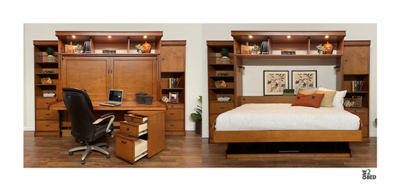 Our Portola Desk Bed is the perfect wallbed solution for your home office/guest room, playroom, workout space, crafting room, game room or living room for those living in a studio apartment It comes in a queen size, and can be built in many different finishes. You will love this bed!